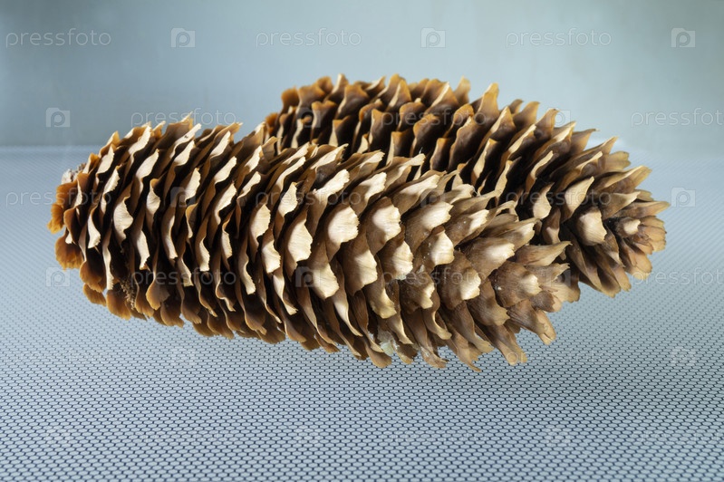 Ветка ели с большим длинным конусом крупным планом