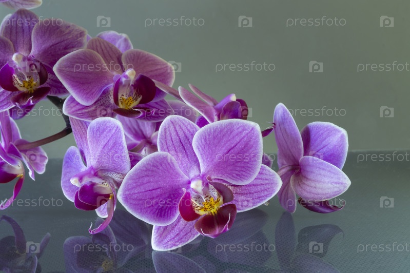 Ветка орхидеи на столе с отражением