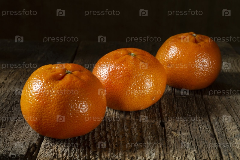 Мандарины на старой деревянной доске крупным планом