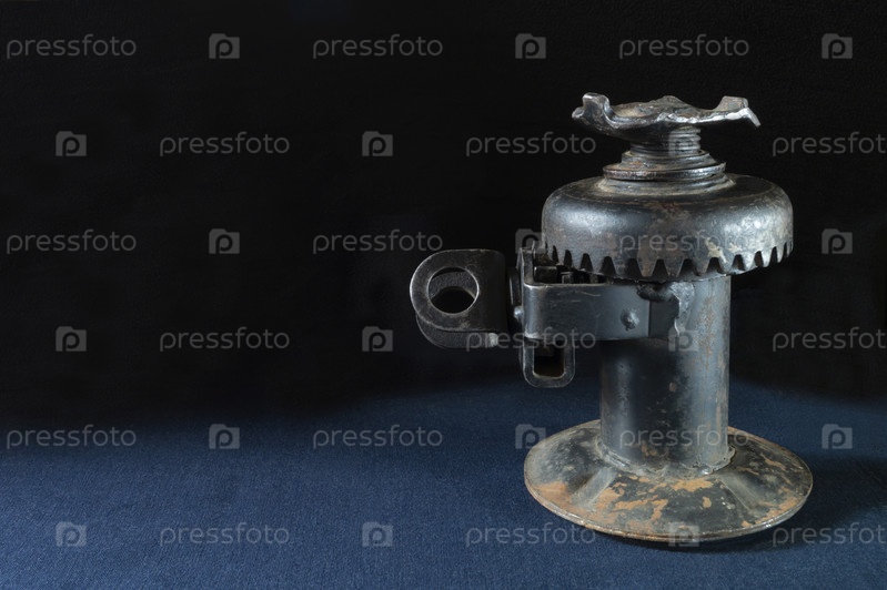 Железный домкрат на стеклянном столе с отражением
