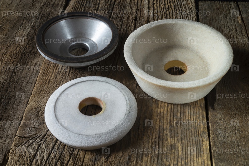 Промышленные шлифовальные и полировальные круги на деревянном столе