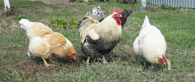 Петух с курицей в солнечный день к весне