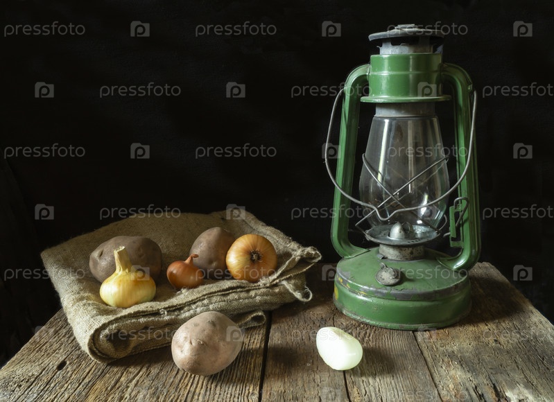Натюрморт с керосиновой лампой и овощами