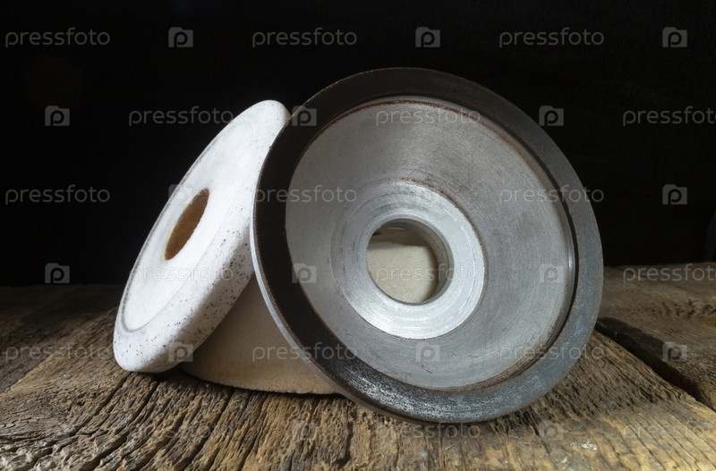 Промышленные шлифовальные и полировальные круги на деревянном столе