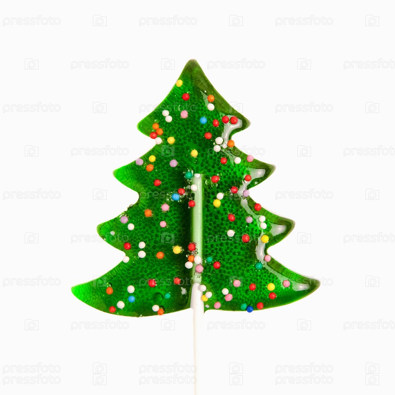 Рождественские угощения: леденец в виде елки на изолированном белом фоне