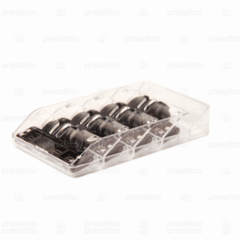 Картридж с лезвиями для ручки бритвы изолирован на белом фоне