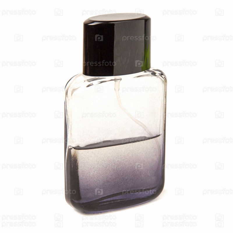 Мужской парфюм натуральный спрей фиолетовый роскошный флакон, изолированный на белом фоне