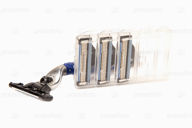 Мужская бритвенная ручка с заправками для лезвий, изолированная на белом фоне