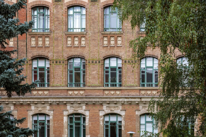 Окна на кирпичной стене