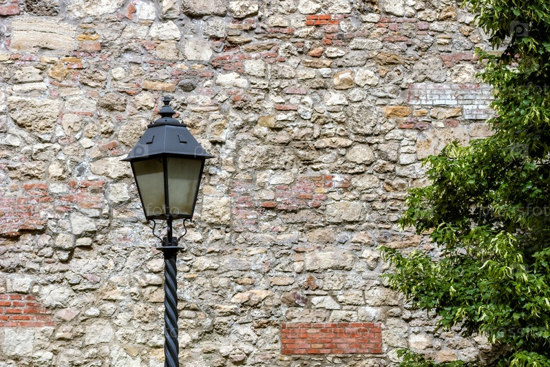 Фонарь на фоне стены