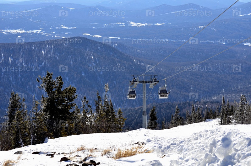 Зимний пейзаж в горах, канатная дорога