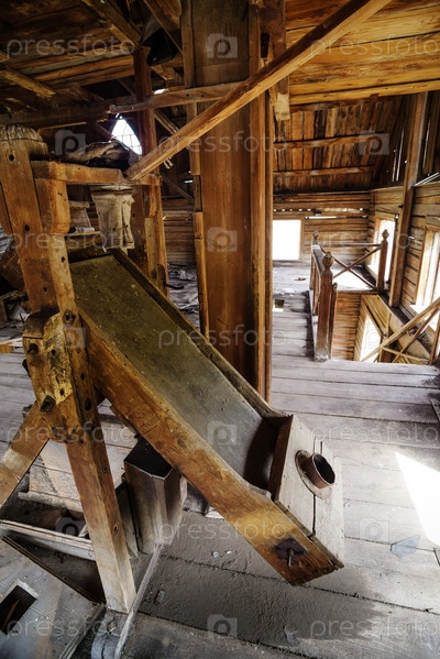 Интерьер старой заброшенной мельницы. Снимок сделан в селе Первокрасное Оренбургской области