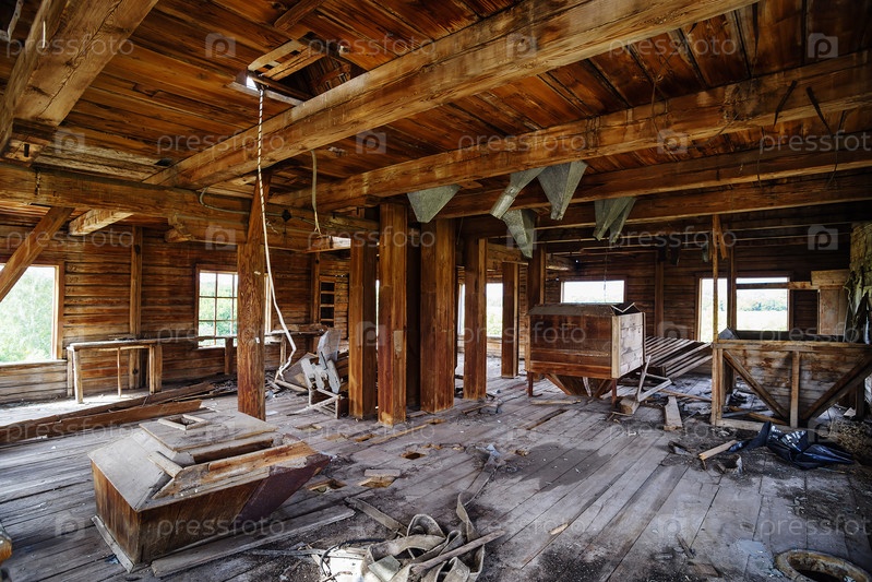 Интерьер старой заброшенной мельницы. Снимок сделан в селе Первокрасное Оренбургской области