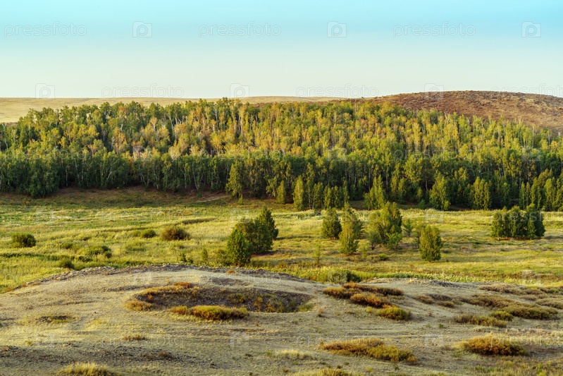 Утренний летний лесостепной пейзаж. Фотография сделана недалеко от села Аркаим, Россия