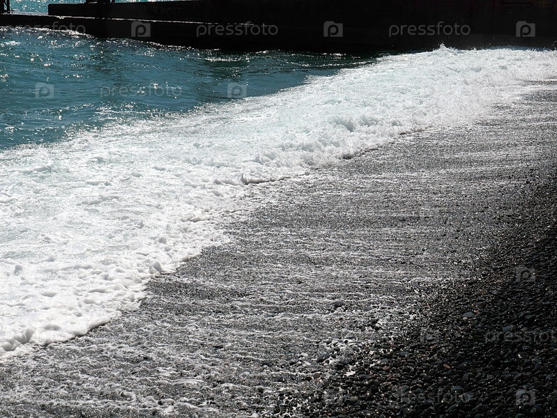Красивая морская волна и галечный пляж