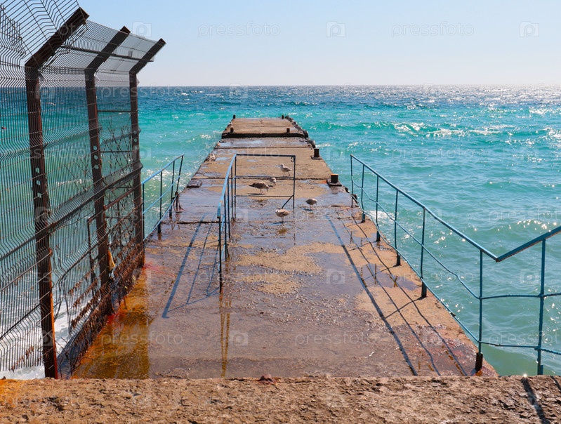 Забор и металлические барьеры на морском пирсе