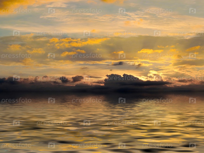 Свет заката солнца отражается в спокойной океанской воде