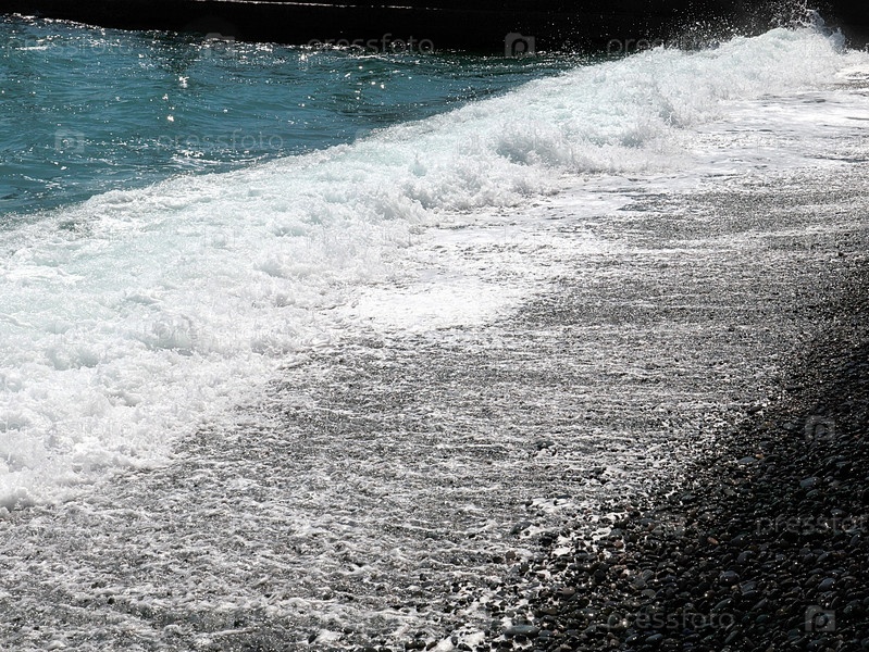 Красивая морская волна и галечный пляж