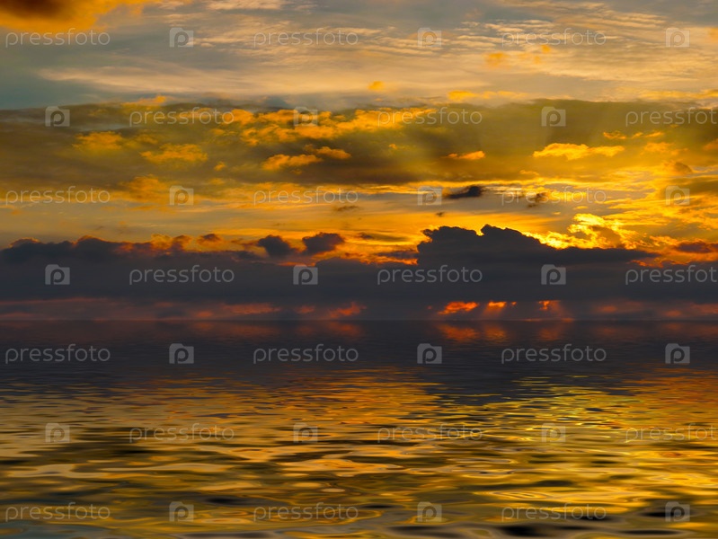 Свет заката солнца отражается в спокойной океанской воде