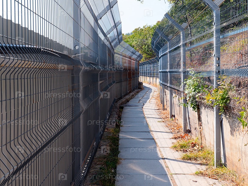 Пешеходный переход огорожен бордюрной металлической решеткой