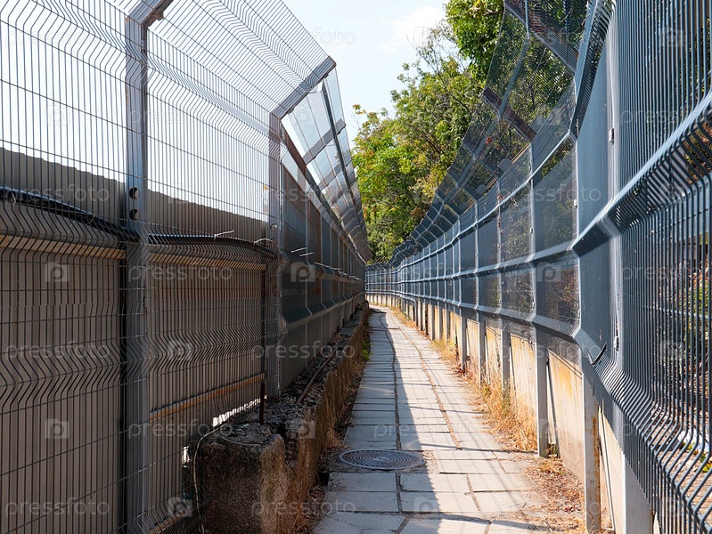 Пешеходный переход огорожен бордюрной металлической решеткой