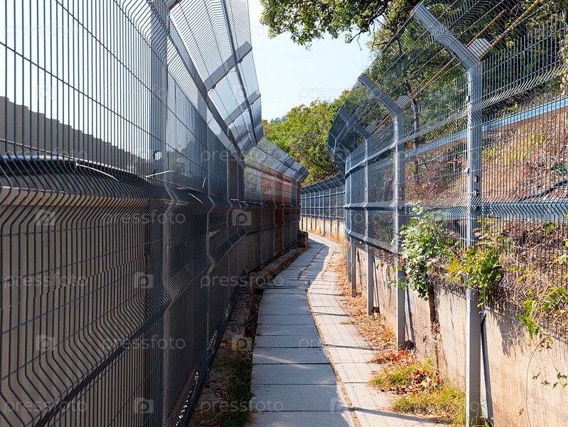 Пешеходный переход огорожен бордюрной металлической решеткой