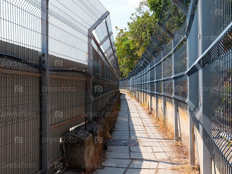 Пешеходный переход огорожен бордюрной металлической решеткой
