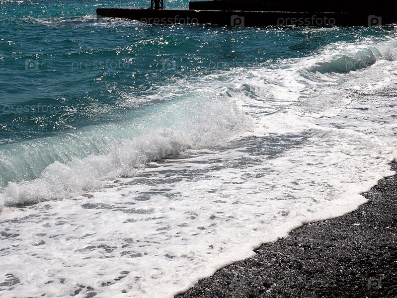Красивая морская волна и галечный пляж
