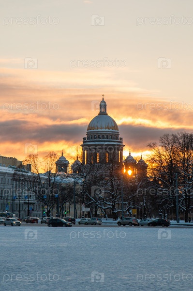 Санкт-Петербург, Исаакиевский собор, зима, закат