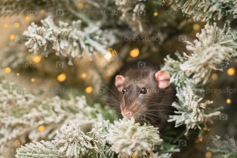 Милый крысиный дамбо на рождественской елке. Символ года