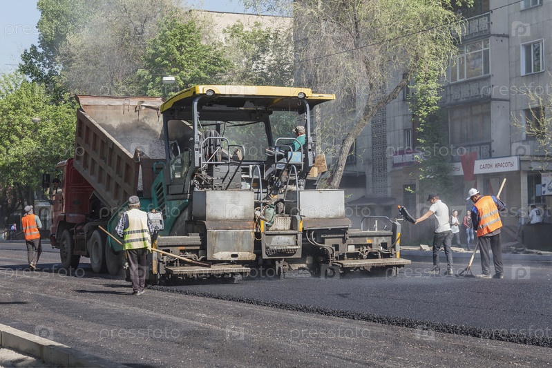 Укладка асфальта на мостовой