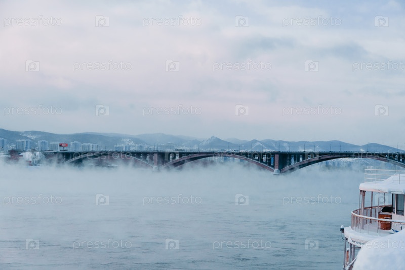 Морозный день над Енисеем в Красноярске