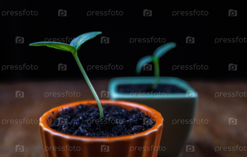 Маленький зеленый росток в горшке