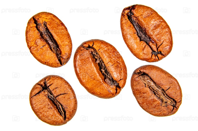 Кофейные зерна, изолированные на белом фоне крупным планом