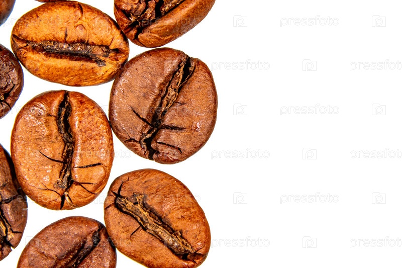 Кофейные зерна, изолированные на белом фоне крупным планом