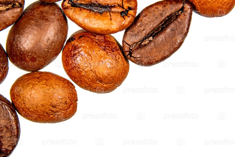 Кофейные зерна, изолированные на белом фоне крупным планом