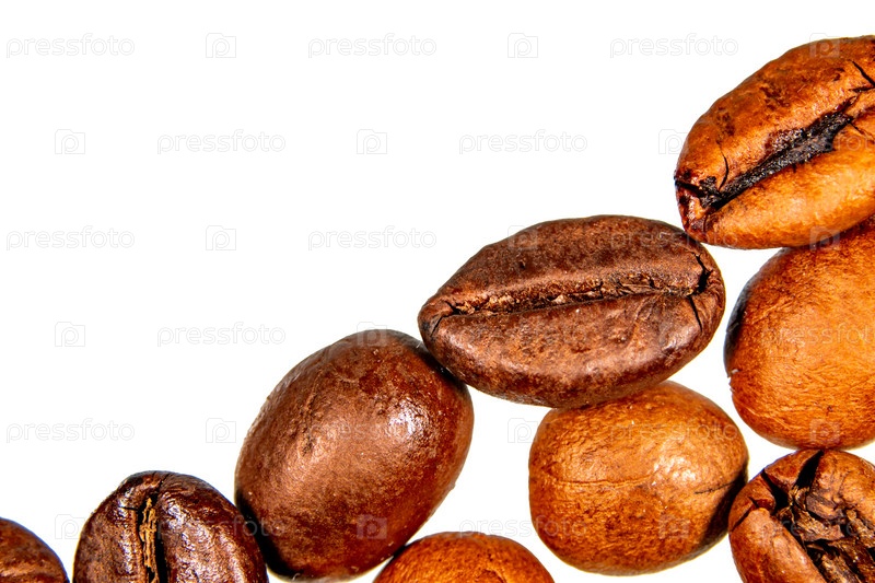 Кофейные зерна, изолированные на белом фоне крупным планом