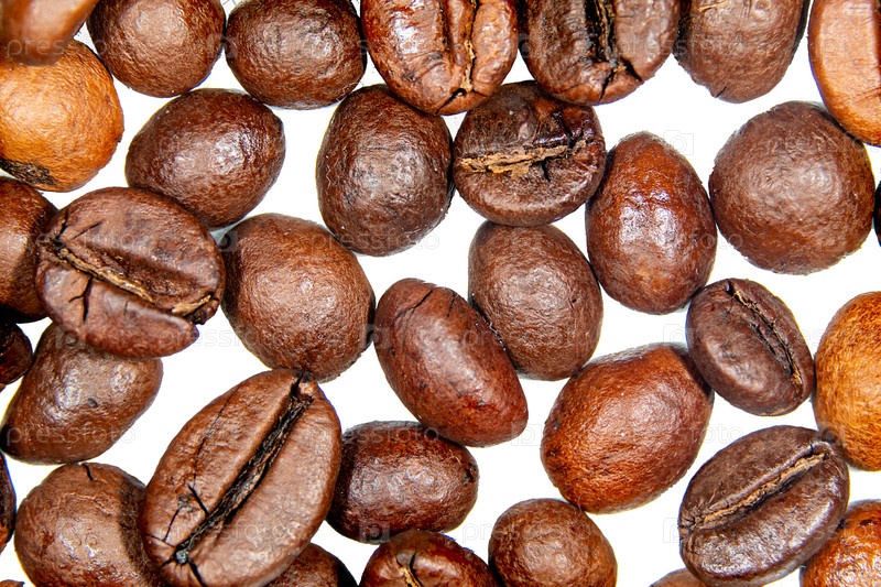 Кофейные зерна, изолированные на белом фоне крупным планом