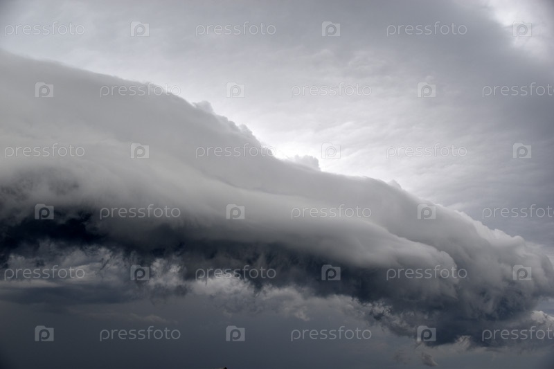 Штормовые ураганные синие свинцовые рваные облака на горизонте