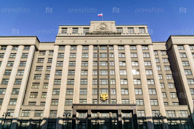 Москва, Россия - 03 марта 2019 г.: Фасад Государственной Думы, здание парламента Российской Федерации