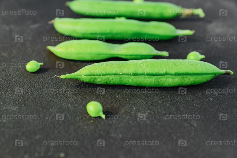 Овощной фон с копией пространства для ваших проектов. Крупный план свежего спелого зеленого горошка на черном фоне