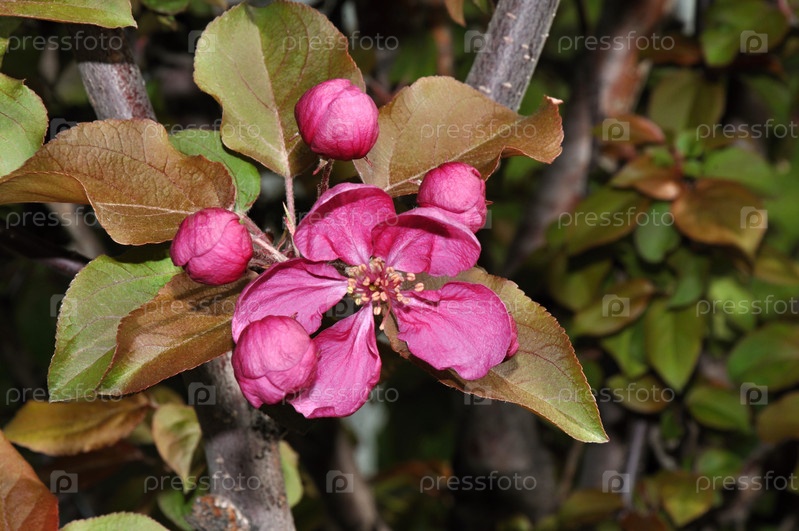 Цветы яблони красного цвета