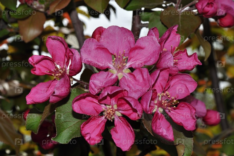 Цветы яблони красного цвета