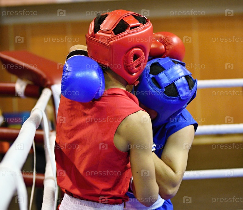 Дуэль двух боксеров на боксерском ринге