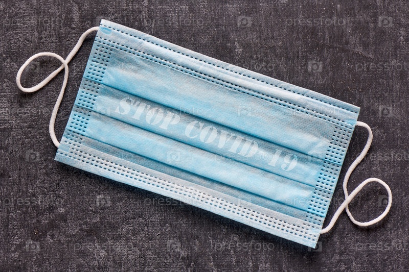 Медицинская маска с надписью стоп ковид-19, крупный план