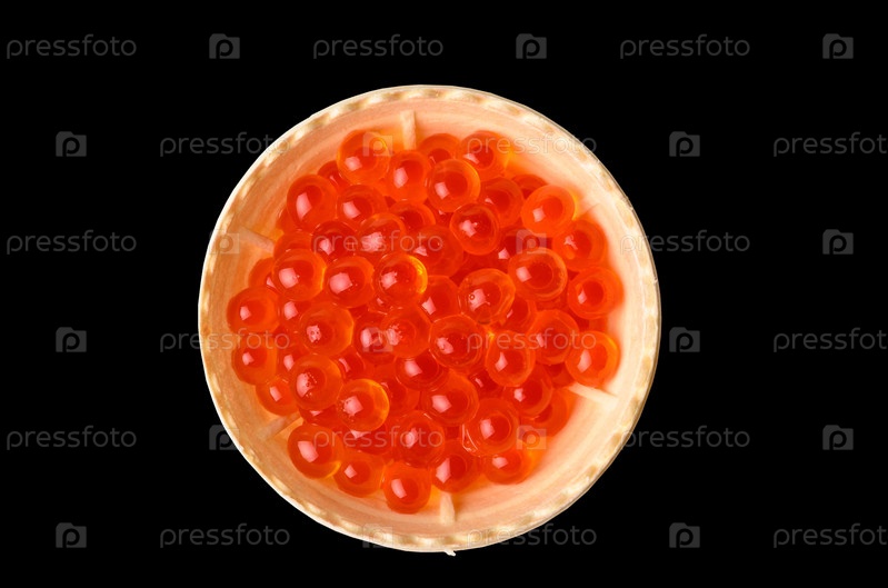 Тарталетки с красной икрой, изолированные на черном фоне