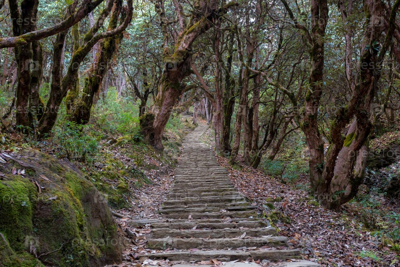 Каменная тропинка в фантастических зеленых тропических джунглях. Тропический лес в Непале, Гималаи