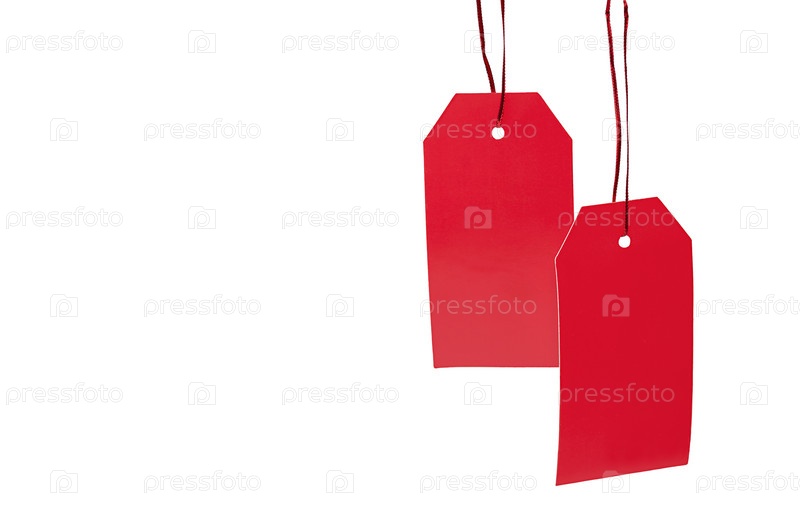 Красные этикетки продажи изолирована на белом фоне с копировальным пространством