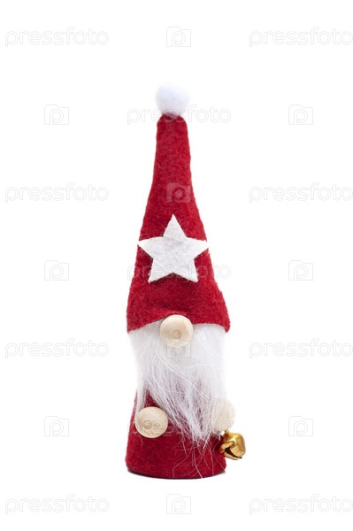 Рождественский гном в красной шляпе на белом фоне