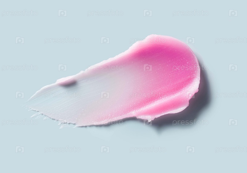 Косметический розовый бальзам для губ цвета фуксии, соль или сахарный скраб, образец косметической маски на сером фоне
